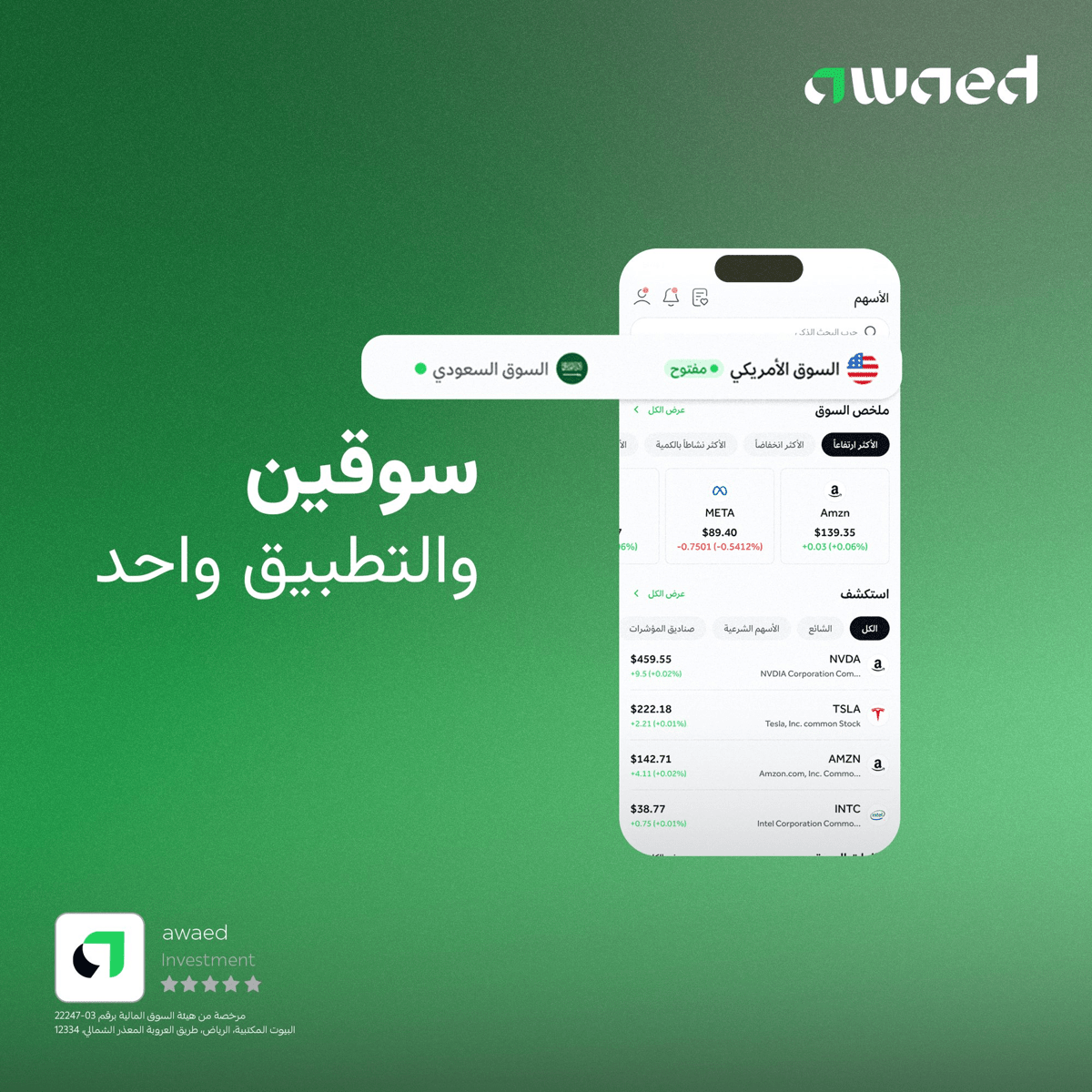 Awaed Alosool Capital was established as a closed joint-stock company with a capital of 82 million Saudi Riyals and a commercial registration number (1010734817). It obtained a Capital Market Authority license, number (22247-03), on March 21, 2023, to engage in dealing, asset management, and custody activities.